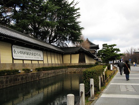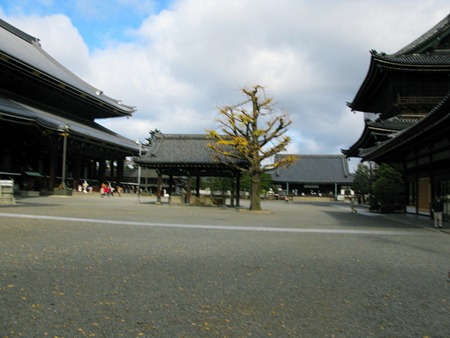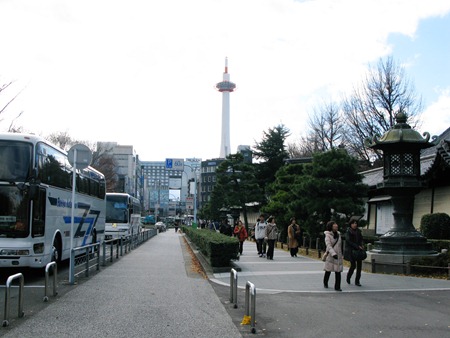 從東本願寺外看京都塔 在畫御影堂門的阿伯