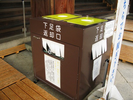 進去要脫鞋 黃色部分提供袋子裝鞋 出來後再把袋子丟到返卻口