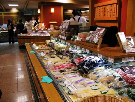 其實 好像有點迷失了方向 莫名的走到京都車站地下街的おみやげ小路 那裏面有很多試吃