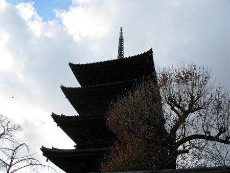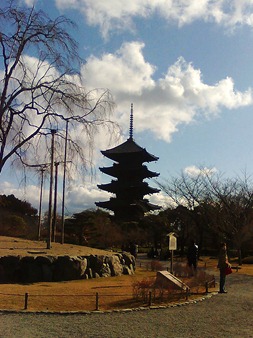 五重塔 樹上的枯葉隨著風飄下來 這個時候還下了一下下的毛雨