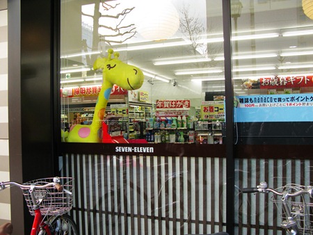 京都的7-11 咖啡色的裝潢有古味 店內的長頸鹿很可愛