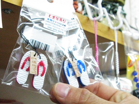 賣化妝品的店 各牌子都變得很廉價 沖繩專賣店裡的藍白拖吊飾