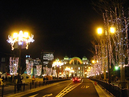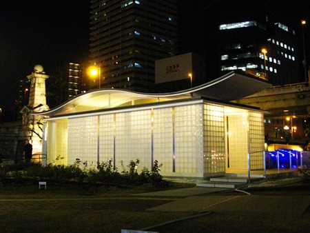 中央公会堂到大阪市役所的通道 燈會變色 但只看到那麼一瞬間就沒了 残念