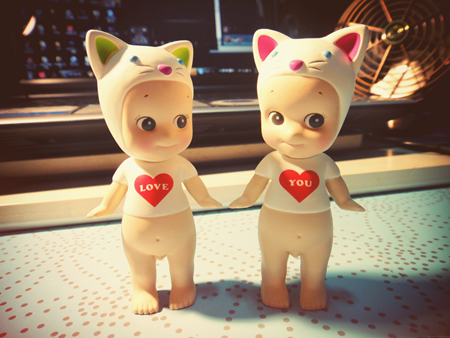 穿白衣服的兩隻是一對 一隻寫♥LOVE♥ 一隻寫♥YOU♥